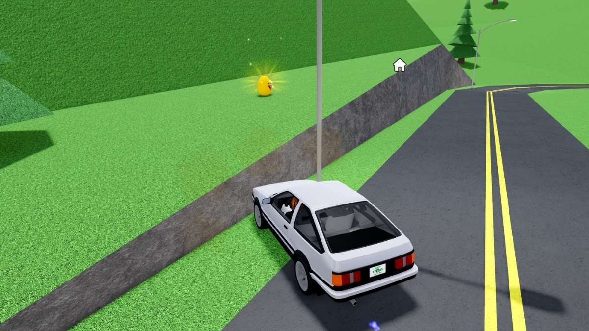 The thirty-fourth egg is located in front of the garage of the house situated on the roadside, as you head down the hill. This can be quite easy to miss, so be on the lookout for the house shown above.