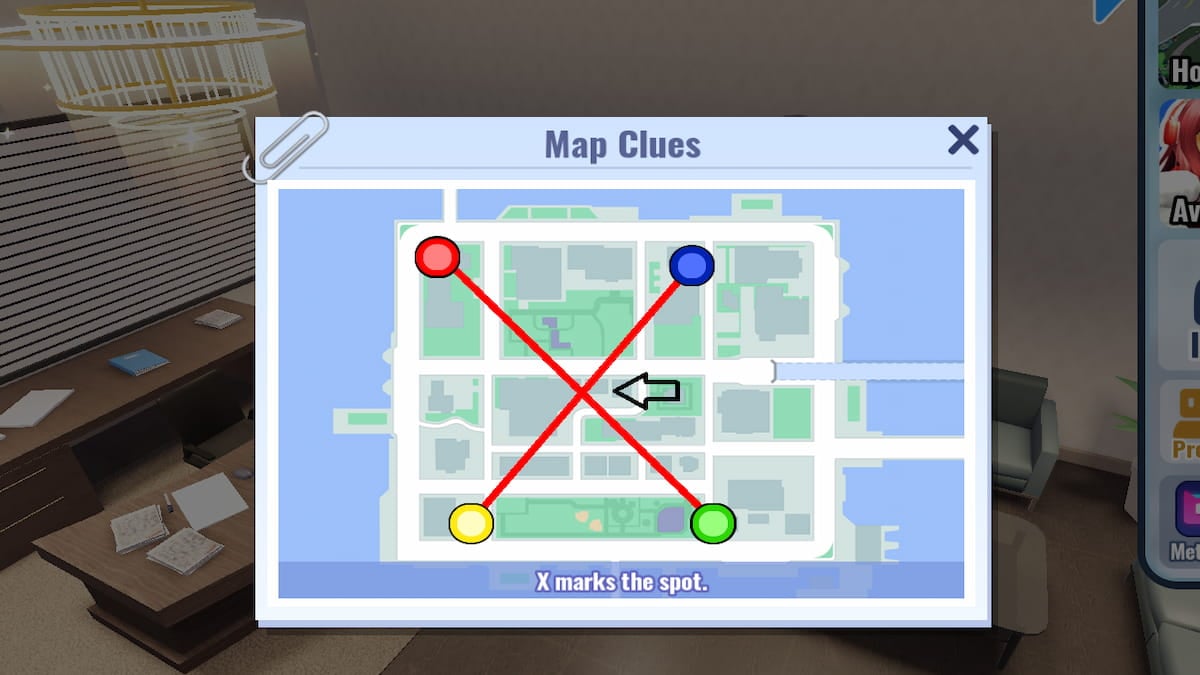 Here, you will see the purple Mayor doll on a desk as shown in the above image. Interact with him, and he will ask you to collect three pieces of Map by performing three different quests.