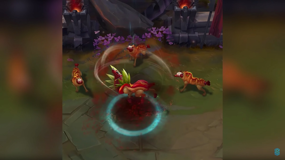 This might be the funniest of the April Fools’ Day skins in League of Legends, and the most unexpected. Naafiri and her little companions are now all hot dogs. On top of that, the markers when you cast her abilities are also a hot dog, and she thinks of hot dogs while casting Return. It’s incredibly silly but also adorable. If you want to splash ketchup all over Summoner’s Rift and intimidate enemies with the hot dog icons of your abilities, this might be your ideal skin.