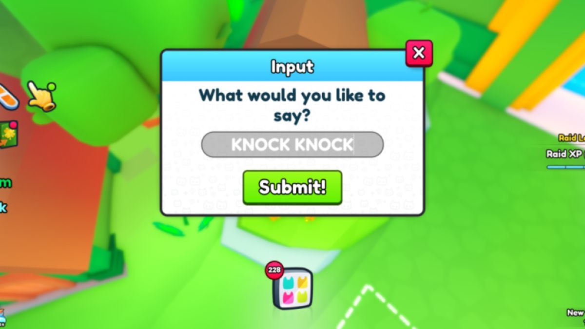 When you have it, go back into the Raids and clear a dungeon. Now, don't go outside! Turn around in the chest room and and keep going until you reach the room with the little houses. Go to the first one on the left and click on the door. You'll get a popup message where you should type knock knock. The door will open and you'll enter the golden room.