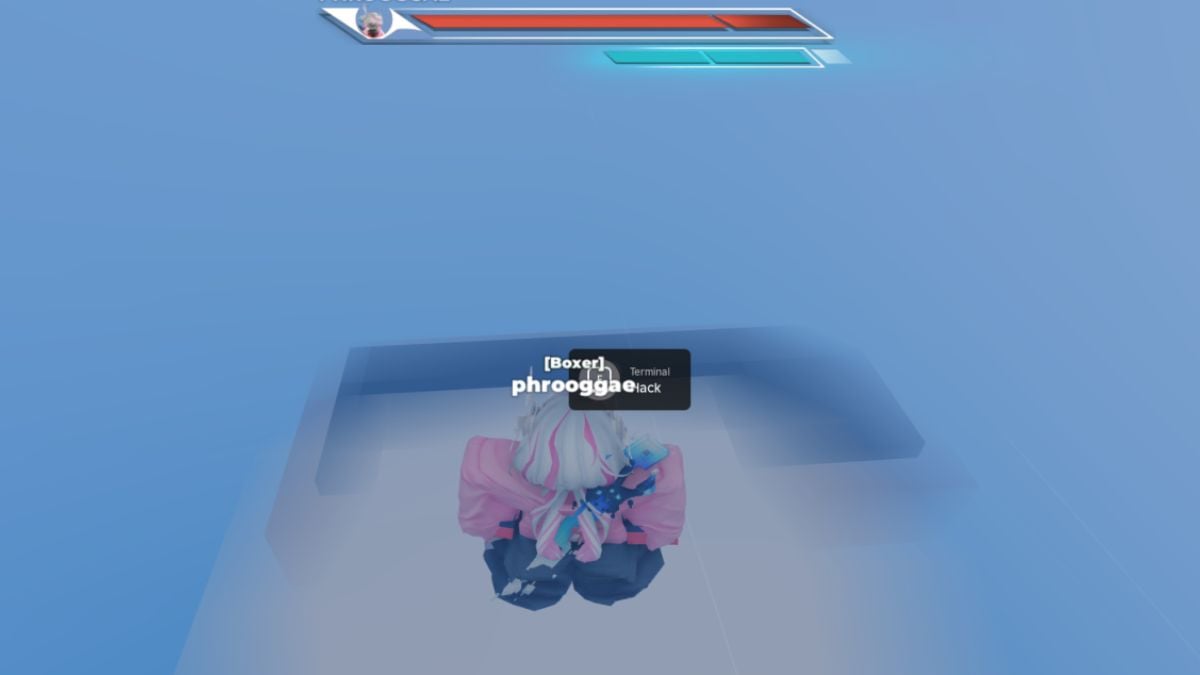 Now jump down from the platform and start going off the map diagonally to the right from the sign at the boxing ring. You will do this by equipping your fists (on 1) and dashing forwards (on space). The game will tell you it disconnected you, but when you try to leave, it doesn't let you. Instead, you will end up in the void.