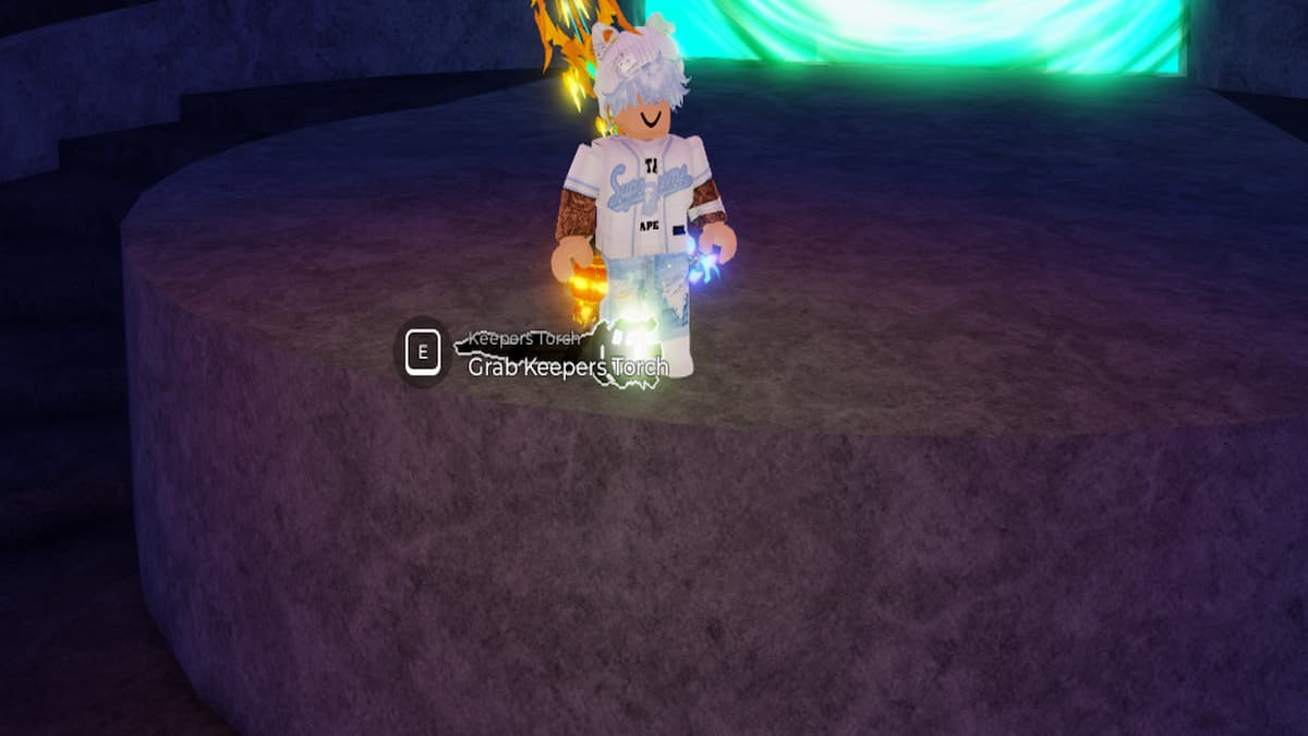 After locating him, he will ask you to enter the cave and take down the Cthulu boss. So, enter the cave and wait in the match-making queue to start a fight with the Cthulu boss. Also, before the start of the battle, you will have to collect the Keeper's Torch from the ground, as it will serve as your primary weapon in defeating the Cthulu Boss. You can find it right before your spawn area, as shown in the above image.