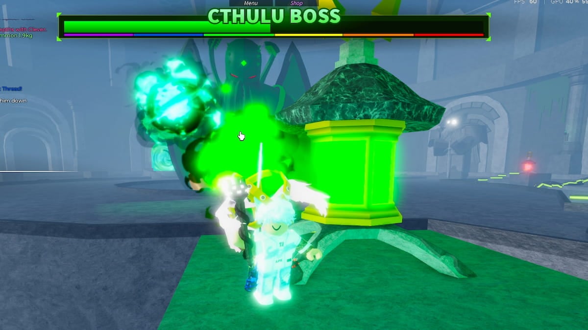 If you are confused, let me explain it. Since you are starting, you must turn your torch into a red flame, which is the color code for the first part under the health bar. Just go to your left side from the spawn area to find a red shrine at the end of a small stone obby and simply interact it with your torch to turn your torch into red color. Start attacking with the red light to inflict damage on him and decrease his bar till you reach the orange part.