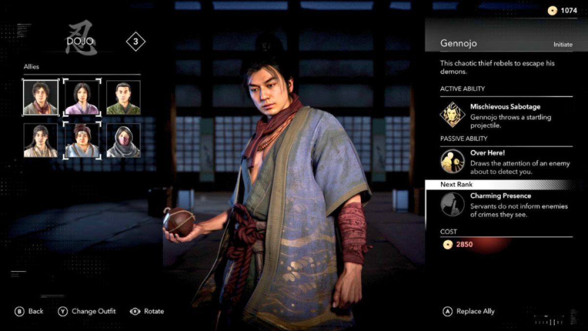 Gennojo is a romance option for Naoe in Assassin’s Creed Shadows, though his slimeball persona leaves a lot to be desired. As an ally, he can be summoned to distract enemies, which is useful in large castles or other situations where Naoe or Yasuke are about to be detected. Given that you can only equip two allies at a time, this ability set isn’t a particularly strong sell. Better to leave Gennojo at the Hideout.