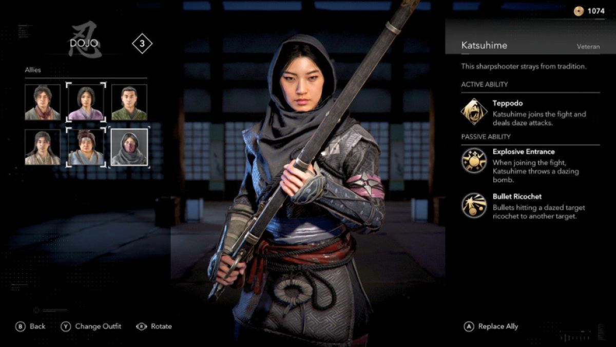 Katsuhime is another romance option for Naoe and she’s a great shot with a teppo. She puts her skills to good use as an ally in Assassin’s Creed Shadows. When she joins combat, she can daze multiple enemies and knock health blocks off of them when she’s upgraded, making it easier for you to pick them off.